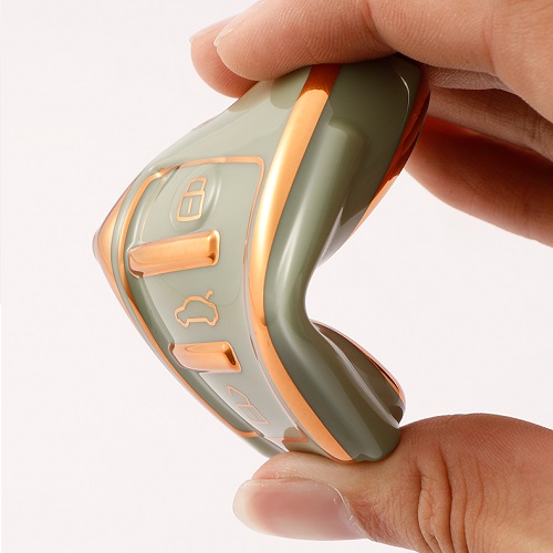 A stylish and practical TPU car key cover designed for Audi A1, A3, A4, A6, Q7, 2004-2017 keys. This cover provides excellent protection against scratches, dust, and dirt. Made from high-quality, flexible TPU material, it ensures durability and a premium look. The green color with gold trim adds a touch of elegance, making it the perfect accessory for your car key.