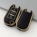 A stylish and practical TPU car key cover designed for Citroen, Peugeot, Opel, 2012-2022 keys. This cover provides excellent protection against scratches, dust, and dirt. Made from high-quality, flexible TPU material, it ensures durability and a premium look. The black color with gold trim adds a touch of elegance, making it the perfect accessory for your car key.